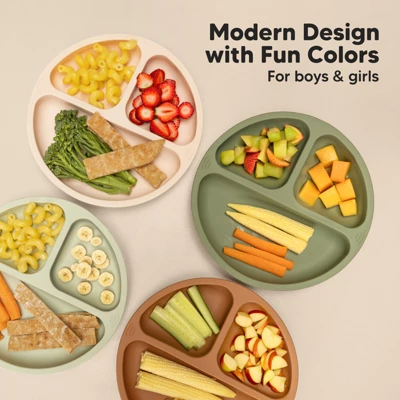 KeaBabies Prep Silicone Plates are designed to encourage independent and mess-free eating. Made from 100% food-grade premium weighted silicone, these toddler plates are dishwasher-safe and BPA-free. These suction plates for babies feature three divided food sections and four extra-strong PrepGrip Suctions to ensure spill-free mealtimes. The baby suction plate can be effortlessly removed by lifting the attached tabs. Enjoy a delightful meal with our vibrant silicone plates for kids.
