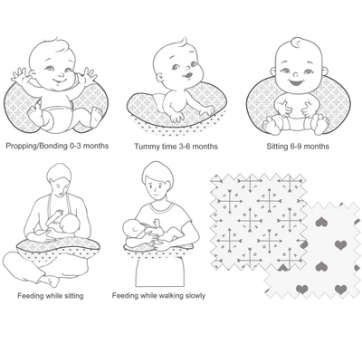 Bacati – 3 Pc Love/Hearts Gray Muslin Hugster Feeding & Infant Support Nursing Pillow With 2 Removable Zippered Covers
