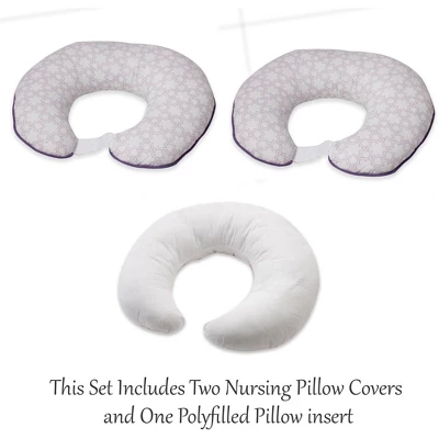 Bacati – 3 Pc Petals/Floral Lilac Muslin Hugster Feeding & Infant Support Nursing Pillow With 2 Removable Zippered Covers