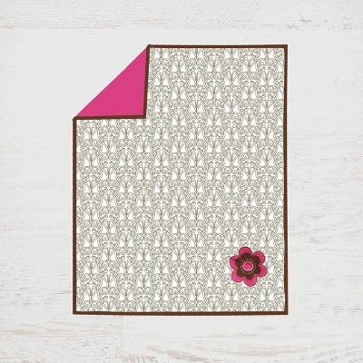- This Bacati 3-piece Crib Set Includes Reversible Comforter/Playmat (33 x 43 inches), Crib fitted sheet (52 x 28 x 6 inches) and Crib Skirt/Dust ruffle (13 inch drop) in fun, colorful and signature prints in 100 percent cotton 200 Thread Count percale fabrics. Designed in United States by Experienced Designers. Many coordinating items available to purchase separately in this Bacati Damask Pink Fuschia Chocolate Bedding Collection.
