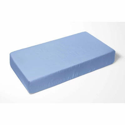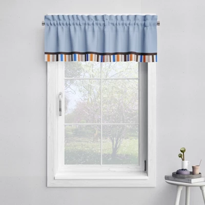- This Bacati 6-piece Crib Set Includes Reversible Comforter/Playmat (33 x 43 inches), Crib fitted sheet (52 x 28 x 6 inches), Crib Skirt/Dust ruffle (13 inch drop) Diaper Stacker (holds more than 30 newborn diapers), Reversible Long Crib Rail Guard Cover (52 x 12 inches) and Window Valance (15 h x 56 w inches with 1.75 inch Rod Pocket) in fun, colorful and signature prints in 100 percent cotton 200 Thread Count percale fabrics. Designed in United States by Experienced Designers. Many coordinating items available to purchase separately in this Bacati Mod Sports Blue Orange Chocolate Bedding Collection.