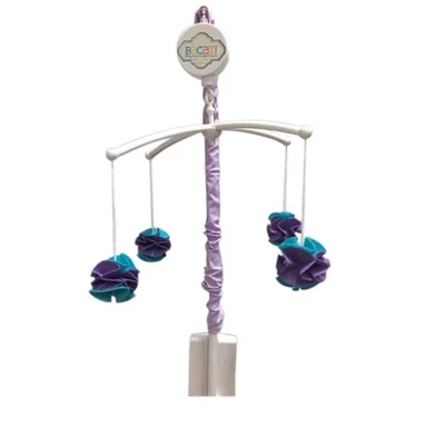 - This Bacati 10-piece Crib Set Includes Reversible Comforter/Playmat (33 x 43 inches), Crib fitted sheet (52 x 28 x 6 inches), Crib Skirt/Dust ruffle (13 inch drop) Diaper Stacker (holds more than 30 newborn diapers), Reversible Long Crib Rail Guard Cover (52 x 12 inches), Window Valance (15 h x 56 w inches with 1.75 inch Rod Pocket), 3 pc Wall Hangings Set and Musical Mobile in fun, colorful and signature prints in 100 percent cotton 200 Thread Count percale fabrics. Designed in United States by Experienced Designers. Many coordinating items available to purchase separately in this Bacati Paisley Isabella Purple Lilac Aqua Bedding Collection.