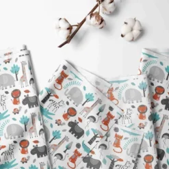 Bacati – Safari Animals Allover Print Aqua Orange Gray Crib Fitted Sheet made from 100 percent cotton percale fabric. Crib sheet has reinforced corners and elastic on corners for secure fit. It is machine washable and gets softer with every wash. It coordinates well with Bacati Safari Animals Aqua Orange Gray bedding collection. Sleep Safely, Little One When putting baby to sleep, Bare is Best in the crib. Use a firm, tight-fitting mattress and remove pillows, quilts, comforters, toys and other soft items. We made it better so you can feel better.