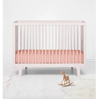 Bacati – Solid Coral Pink Crib Fitted Sheet made from 100 percent cotton percale fabric. Crib sheet has reinforced corners and elastic on corners for secure fit. It is machine washable and gets softer with every wash. It coordinates well with many Bacati bedding collections. Sleep Safely, Little One When putting baby to sleep, Bare is Best in the crib. Use a firm, tight-fitting mattress and remove pillows, quilts, comforters, toys and other soft items. We made it better so you can feel better.