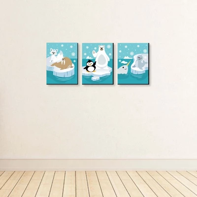 Arctic Polar Animals Wall Art Set INCLUDES 3 ready-to-hang winter themed panels and non-marking wall mounts for easy hanging. Arctic Polar Animals artwork is perfect for a nursery, kids room or playroom. Arctic Polar Animals Wall Art & Kids Room Decor SIZE each 10 inches high x 7.5 inches wide x .5 inches thick. Winter animal lightweight art prints will arrive ready to use – no frame needed. The black edge gives each print a modern, finished look. EASY TO HANG: Simply attach a non-marking wall mount (included) to each corner of an Arctic Polar Animals art panel and press to hang in desired location. Wall mounts are repositionable, so you can redesign your artwork display at any time. PREMIUM HOME DECOR: 3-piece Arctic Polar Animals Wall Art Set is professionally printed on thick material with a black edge. You will not need to frame this set of arctic room decor. Each standout print is ready to hang and will add a contemporary touch to any room. MADE IN THE USA: Arctic Polar Animals Nursery Wall Art & Kids Room Decor is designed and manufactured at our Wisconsin facility using materials that are Made in the USA.