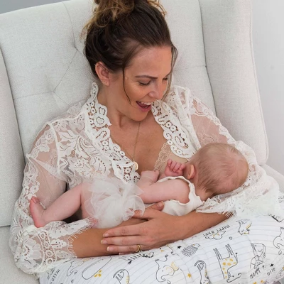 - Ergonomic positioning for breastfeeding, bottle feeding, and Organic fabrics gentle on baby’s skin