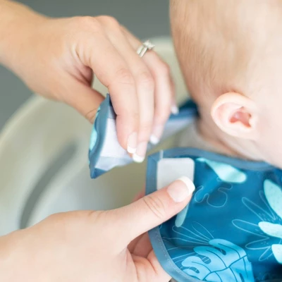 Our SuperBibs save you from the mess! The SuperBib attaches over the back of the shoulder with hook and loop closure for a quick, adjustable and tug-proof fit. With a handy crumb catcher / catch-all pocket for containing spills. Made from Bumkins lightweight, waterproof, easy-wipe, stain and odor resistant fabric. Single ply construction means no worrying about icky stuff growing between layers of fabric. Without a cotton layer, stains and smells don’t stick. Wipeable and machine washable for easy cleaning so you can use it over and over again. A pack of 3 ensures you have a clean one handy!