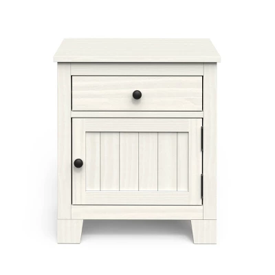The Forever Eclectic Rockport Nightstand is the perfect side table with storage to place next to your child’s bed or favorite chair. Featuring a textured, rustic finish, this small children’s nightstand provides generous storage space in its spacious drawer of lower cabinet. Complete your child’s room with The Rockport Dresser or Chest of drawers and other coordinating pieces from the Child Craft Rockport nursery collection.
