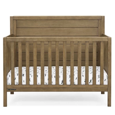 The Cambridge 4-in-1 Convertible Crib by Delta Children helps make your baby’s nursery a true expression of your style. This baby crib showcases clean lines and a distressed, textured finish that comes together to create the perfect yin and yang between rugged and refined. A one-of-a-kind option for your little one, the Cambridge 4-in-1 Convertible Crib is designed with a solid headboard that’s accented with shiplap-inspired horizontal planks that instantly brings warmth and character to any baby’s room. A welcome spot for sweet dreams for years to come, this crib allows you to easily lower the mattress support to any of the three height levels to accommodate your child as they begin to sit or stand. And to make sure it’s the only bed your child will need in their lifetime, it easily adapts from a crib to a toddler bed, a daybed, and a full size bed.