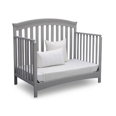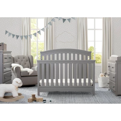 You’ll love the Emerson 4-in-1 Convertible Crib from Delta Children for its classic design and subtle traditional details that work with any décor. Featuring an arched silhouette with airy slats around all sides and bead detailing on the headboard and footboard, this stylish crib will help you create a restful and beautiful nursery. Designed to grow along side your child, this strong and sturdy crib has three mattress height positions that allow you to lower the crib as your little one matures, plus it converts into a toddler bed, daybed and full size bed (Toddler Guardrail and Full Size Bed Rails sold separately). Epitomizing timeless style, the Emerson 4-in-1 Convertible Crib will be the centerpiece of your child’s space at any age. To complete the look, pair with the coordinating Emerson 3 Drawer Dresser with Changing Top (sold separately). Delta Children was founded around the idea of making safe, high-quality cribs affordable for all families. That’s why all Delta Children cribs are JPMA certified, and are tested above and beyond industry standards to ensure the well-being of every user.