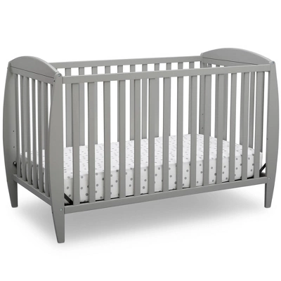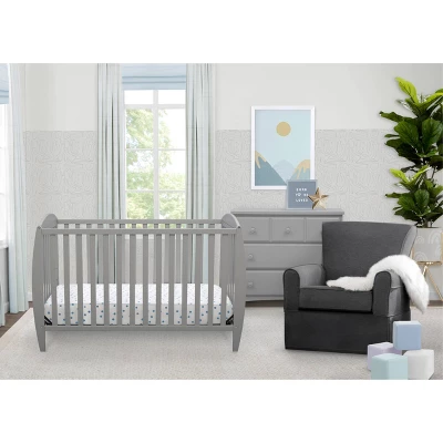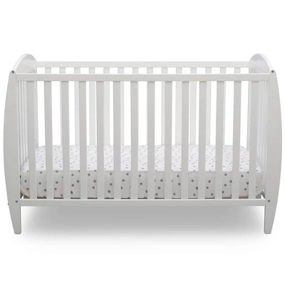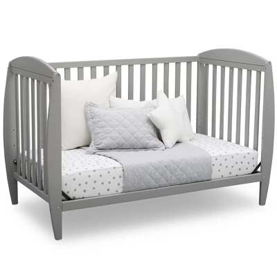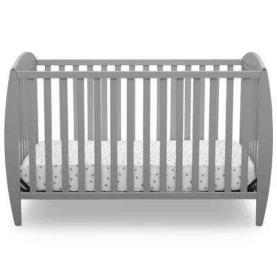 Set the tone for a beautiful and calming nursery with the Taylor 4-in-1 Convertible Baby Crib by Delta Children. The crib’s sleigh-style silhouette and open, airy slats puts a playful spin on classic style-just the thing you need to give your baby’s room the perfect amount of personality. Built to grow with your child, this crib features an adjustable mattress height that allows you to lower the mattress as your baby begins to stand, plus it converts to a toddler bed, daybed and full size bed. An exceptional value, the Taylor 4-in-1 Convertible Baby Crib by Delta Children provides your little one the right bed for every age and stage. Available in gray, Bianca White or Dark Chocolate, and coordinates with other furniture from Delta Children in the same finish color to complete your nursery.