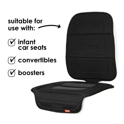 The Diono Seat Guard Complete was designed to cover the vehicle seat to keep car seats firmly installed without causing harm to the upholstery. Made with lightweight yet durable material and featuring raised edges to capture crumbs, dirt and spillages. The moulded high-density foam provides a sturdy surface to prevent damage from heavy car seats as well as grubby little feet on the back of the seat when rear-facing, and the edge of the seat when forward facing. Designed to work with seat belt and LATCH/UAS/isofix installations and Diono crash tested to help provide the best safety possible for your child.