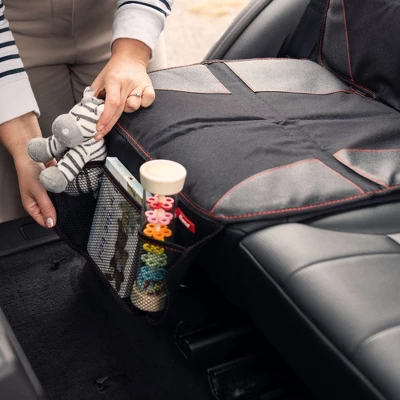 - SAFE SECURE PROTECTION The crash tested anti-slip car seat protector is designed to grip surfaces on top and bottom panels to keep protector and car seats securely in place. Designed with 3 mesh storage pockets to keep car essentials organized