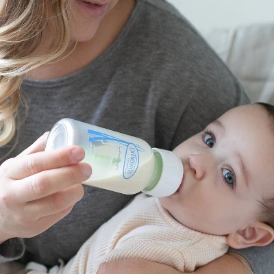 Your options have never been better with Dr. Brown’s Natural Flow Anti-Colic Options+ Narrow Glass Baby Bottle. The anti-colic internal vent system is clinically proven to reduce colic. Dr. Brown’s bottles provide a more comfortable feeding experience for baby by decreasing spit-up, burping and gas. This vacuum-free feeding is closest to breastfeeding and Dr. Brown’s silicone nipples provide a consistent flow so baby can feed at their own pace. The breast-like nipple shape encourages a proper latch for a more natural bottle feeding experience and eases the transition from breast to bottle and back again. Dr. Brown’s vent system is proven to help preserve bottle milk nutrients and aids in digestion for a better night’s sleep. The silicone nipple, together with the internal vent system, offer a reliable and trusted bottle feeding experience that makes Dr. Brown’s the #1 Pediatrician Recommended Baby Bottle in the U.S.* Dr. Brown’s® Glass bottles are heat and thermal shock-resistant, which can withstand hot and cold temperatures, along with gradual temperature changes. Made to grow with baby, our bottle is designed to nourish through all of baby’s feeding stages and is recyclable. Safe for use in dishwasher (top rack only), electric and microwave sterilizers or boiling water. BPA Free. *IQVIA Health ProVoice Survey 2022
