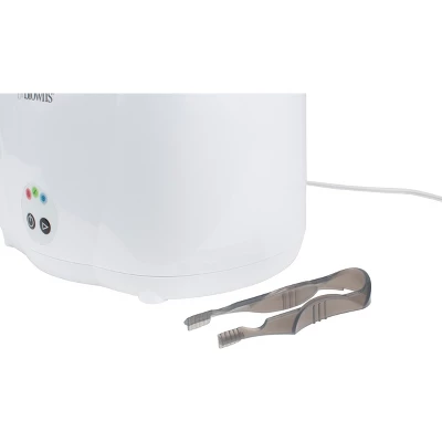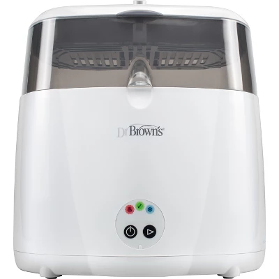 One run and done! Sterilize up to six baby bottles at once, plus parts, pacifiers and more with Dr. Brown’s™ Deluxe Bottle Sterilizer. Electronic controls with cycle indicators make this countertop baby bottle sterilizer easy to use and operate. Set it and forget it with the auto shut-off feature! A removable tray on the inside is designed to position baby bottles perfectly, while the built-in accessory tray holds bottle parts, nipples and pacifiers. The measuring cup makes it easy to add new water and included tongs keep bottles and parts clean and your hands safe.