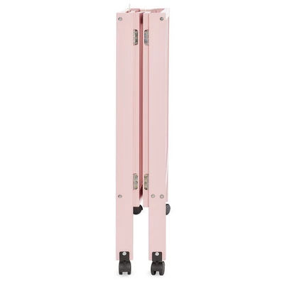 The Dream On Me Quinn Full Size Folding Crib is the perfect compact option to make the most of small spaces Storing is a breeze – when the crib is not needed, simply fold flat using the patented folding system and store. The perfect space-saver Simply unfold and use again when you need to The Quinn is lightweight and comes with wheels, making it a portable delight. It features a three-position mattress support to keep pace with your growing baby. It boasts a clean and contemporary design aesthetic. Choose from five beautiful non-toxic, child-safe, water-based finish options as you create a stylish and timeless sleeping space for your child Safety is a top priority at Dream On Me. All our cribs meet/exceed applicable ASTM & CPSC standards. Safety features include the stationary rail design (non-drop side) and dual safety hooded locking wheels. Product specs are 54 L x 31 W x 46 H inches, max weight limit 50 lbs. We recommend the Dream On Me non-toxic, Greenguard Gold certified full-size crib mattress for the perfect fit. All tools for assembly included.