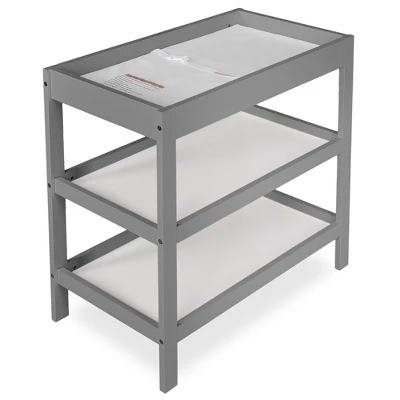 A changing table is a must-have in a nursery and the Ridgefield Changing Table is a functional and stylish solution that works beautifully with a variety of color palettes and nursery themes. Use it as a changing station when your child is young, and as your child grows older, as a night stand! The mattress changing platform is made of metal and features a water resistant mattress pad for changing that has a safety strap for keeping baby secure.Safety rails surround the changing station on four sides making the table a fully enclosed and secure space. The Ridgefield is tested for lead and other toxic elements and meets applicable ASTM standards.The Ridgefield comes with two easy-to-reach, spacious shelves below the changing table that allow you to keep your LOs essentials neatly organized and easy to access! Made of New Zealand pinewood, it features a clean design and is available in four vibrant finishes. Mix and match with Dream On Me Cribs as you design a beautiful and fun nursery space for your child.Product dimensions are 33.5Lx16Wx33.5H inches and maximum weight limit is 30 lbs. Comes with anti-tipping tool kit.