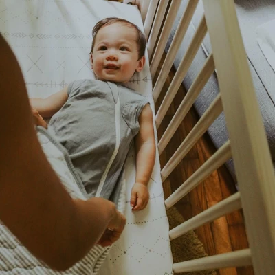*Patented* and only found at embe. For babies 6-24 months old. Now baby can sleep the same way mom and dad do… with a Sheet + Comforter!Allow your little one to comfortably layer up for warmth or simply remove a layer to cool down. Our patented Laylo SheetSack is a wearable sheet and comforter set all in one. Our Laylo sleep sack has hidden snaps to attach the comforter to the SheetSack for paired use. The SheetSack has an inverted zipper to allow for easy diaper changes. The Quilted Comforter Sack has convenient double-sided zippers so you can easily unzip at both sides to slide on or off without waking the baby. Get the best nursery wearable blanket from emb today and start enjoying more sleep!