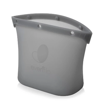 The Evenflo Silicone Steam Sanitizing Bag is designed to help eliminate harmful germs and bacteria from most pump parts, bottles, pacifiers, and more. Made from 100% FDA food-grade silicone, this this patent pending, eco-friendly bag is more durable than plastic alternatives and can be used over and over again, creating less waste for the environment. To sanitize, simply add 2 oz. of water, your microwave-safe items, and place in the microwave for the instructed amount of time. The self-standing bag will maintain a stable upright position while in use, and the Safe-Grip corners provide a place for safer, cooler handling. This durable silicone bag is not only great for sanitizing, but can also be used for snacks, storage, and more.
