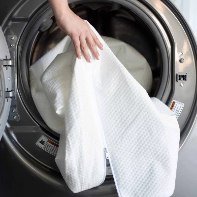 - WATER RESISTANT and MACHINE WASHABLE: Features a soft, removable, machine-washable outer cover over a water resistant surface; Gently unzip outer cover, machine wash in cold water (delicate cycle, no bleach) and hang to dry (do not tumble dry)