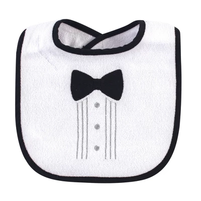Hudson Baby bib and burp cloth set features matching bib and burp cloths with three fiber filled bibs and two fiber filled burp cloths. our bib and burp set is to keep mom and baby’s clothes clean during life’s messier moments. The fiber filled inner protection helps maximize absorbency and softness of the bibs. This set is sure to catch all your little one’s messes. Bibs are velcro closure. Hudson Baby Infant Boy Cotton Terry Bib and Burp Cloth Set 5pk, Perfect Gentleman is a great baby essentials set for your little one.