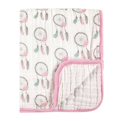 Hudson Baby offers premium quality, stylish baby apparel and products at affordable prices. Our muslin tranquility blankets feature beautiful prints on four layers of lightweight, 100% quilted cotton muslin. Super soft and breathable, your little one will feel secure and safe without being too hot or uncomfortable while the extra weight soothes and comforts your baby. Our generously sized blankets make great stroller covers or nursing covers as well at 46×46 inches. Each arrives folded and tied with a ribbon, ready to wrap or drop into a gift bag. Hudson Baby Infant Girl Muslin Tranquility Quilt Blanket, Dream Catcher is the perfect addition to your little one’s nursery.