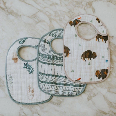 Protect baby’s outfit with cozy comfort from a bib out of this Cotton Muslin Classic Bib Set from Little Unicorn. These rounded bibs provide plenty of coverage as baby tries out new foods and inevitably spits some out. Grab a corner of this soft cotton bib to comfortably wipe messes from baby’s face. Three snap closures help you find the perfect fit for your baby and secures in place quickly and easily, so you don’t have to make your hungry baby wait.