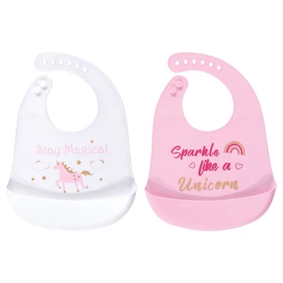 Luvable Friends waterproof silicone bibs are the perfect solution to make meal time less messy and convenient to clean. Our silicone bibs are waterproof and easily wiped clean. Our deep pockets flips out to catch crumbs, spills drips and leaks. Our silicone bibs will make a great meal time solution to make meal time bib to help you relax and have more fun with baby. Our bibs are easy to clean – just wipe down with warm soapy water. Button and hole closure allows for many different sizes to grow with your little one. BPA Free, PVC Free and Phthalate Free. Luvable Friends Baby Girl Silicone Bibs 2pk, Flamingo Love is a great baby essentials set for your little one.