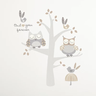 - ADORABLE TREE OWL THEME: You will think you are in an enchanted forest with our woodland look. The fitted sheet is a toss of sweet owls set off by a bed skirt of tailored herringbone, special stitching and a ric rac trim. The quilt features appliqued, embroidered owls sitting in a tree. Our diaper stacker has the cutest 3-D plush owl head and wings, while the large nursery wall decal depicts owls roosting in a tree and the words OWL LOVE YOU FOREVER, completing your nursery.