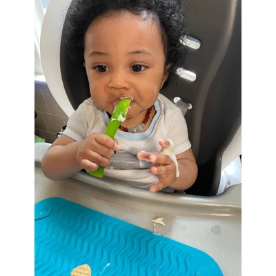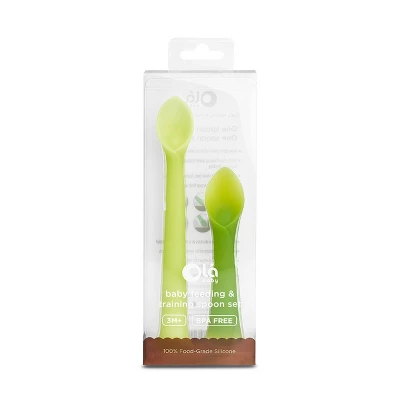 The Olababy Training and Feeding Spoons are both made with 100% toxin-free, food-grade silicone. The Feeding Spoon is the perfect tool to get your baby started on solid food. The Olababy Training Spoon is designed for your baby when they start to explore self-feeding. The flexible material allows for easy scooping, cutting, or even slicing. It also doubles as a teether for when those growing pains act up. The wide base design allows for better hygiene, as the spoons can be placed upright on any surface. The Olababy Training and Feeding Spoons are the perfect pair to teach your baby to enjoy food, and encourage self-feeding.