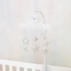 Little Love By NoJo Tulle Cloud With Silver Metallic Stars Nursery Crib Musical Mobile – White