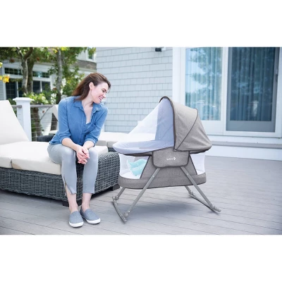 Your growing child needs plenty of rest, but that doesn’t mean you have to schedule your day around nap time. The Safety 1st Nap and Go Rocking Bassinet lets your little one sleep anytime, anywhere, whether you’re out at the playground, park or grandparent’s house. The bassinet gently rocks side to side to lull your baby to sleep, so you don’t have to worry about rushing home when your little one turns into a sleepy grump. If you’re concerned about the sun or pesky insects, the retractable canopy offers the perfect amount of shade, while the mesh net keeps bugs out. And while we may not be able to prevent a meltdown when it’s time to go home, we’ve made packing up a little easier with the Nap and Go’s simple fold.