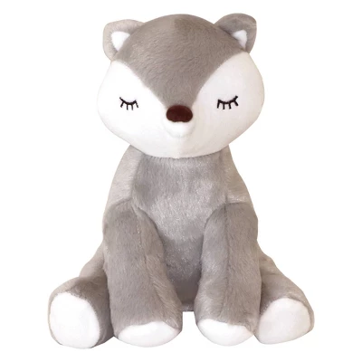 Fox Toy is made of soft plush fabric in gray and white. Measures 9 inches tall