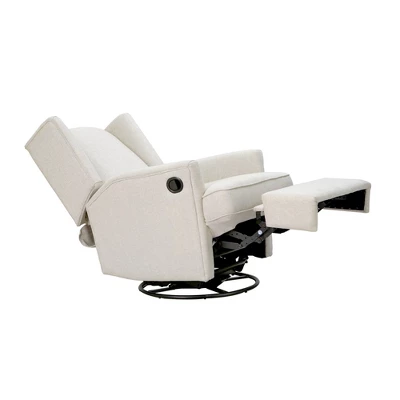 Clean and crisp, like ink on paper, this reclining glider is a stylish addition to any room. Its quiet and smooth gliding movements make it ideal for rocking a baby or even yourself to sleep. Designed with thick pillow cushioning and padded arms for added comfort, the recliner is strong, comfortable and stylish, making it thrive in any space. It is available in 3 colors: Canvas, Gray, and White.