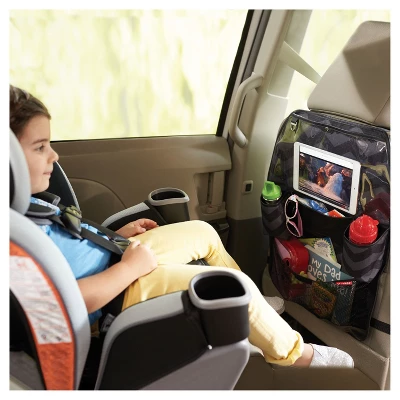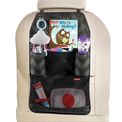 A stylish way to organize and maximize backseat space!Perfectly sized to securely fit behind most front seats, this car organizer is as smart as it looks. The chic chevron print and fashionable faux leather coordinate with any car interior.