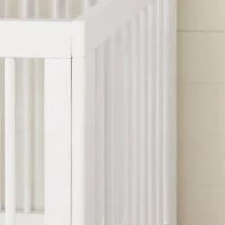 Babies grow very quickly, so it’s important to choose furniture that’ll last over time. This crib is a real 3 in 1! You get a crib, a transition bed, and a small bed all at once – so this piece will evolve with your child, from newborn to toddler. All you have to do is replace the bars at the front with a toddler rail (not included), then remove it once baby is ready.