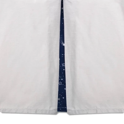 - Crib skirt is generous 16” drop with 100% pp platform, 100% cotton drop, measuring 28” x 52” to fit standard cribs